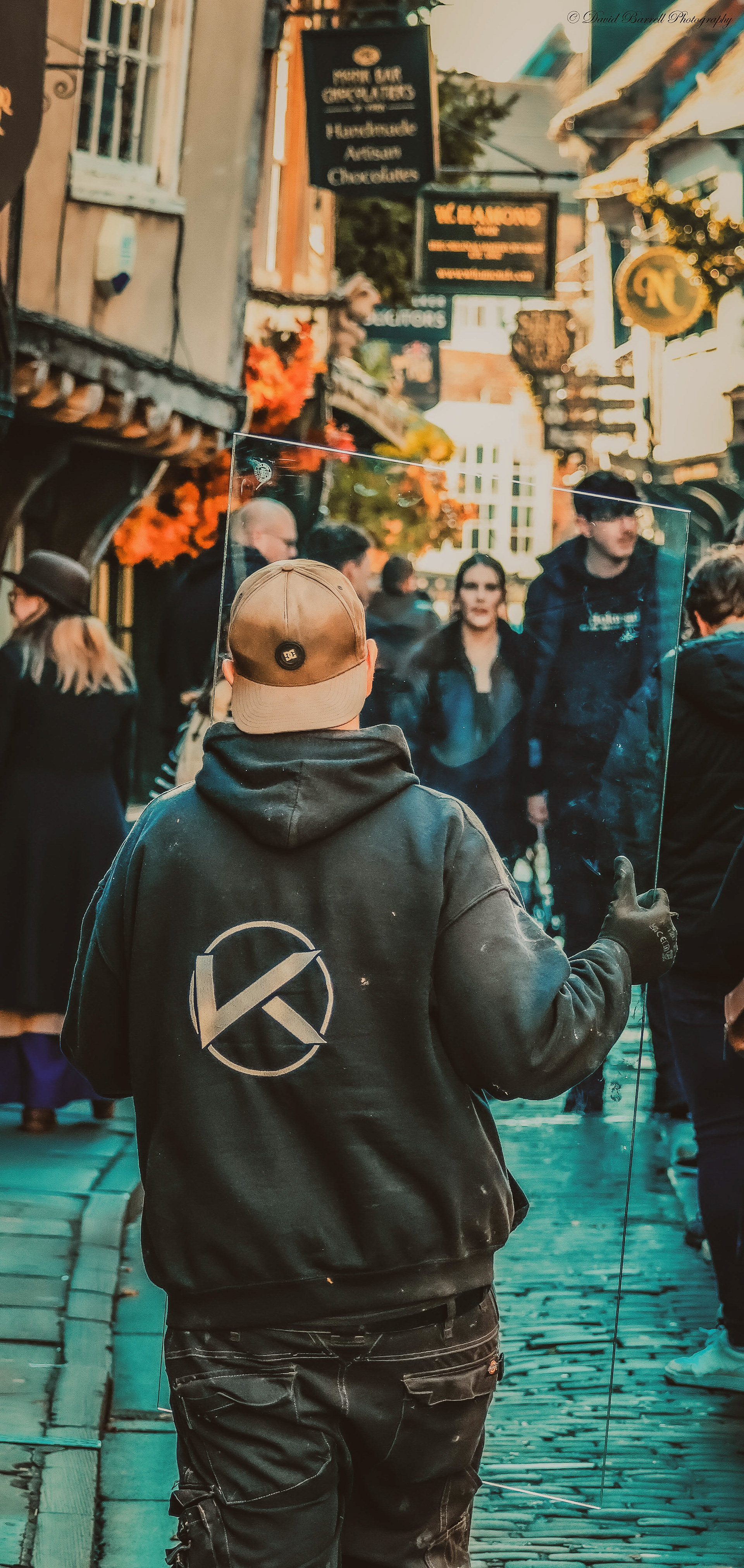 A collection of images in both colour and black and white. The majority were taken in Yorkshire towns and cities.